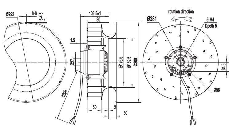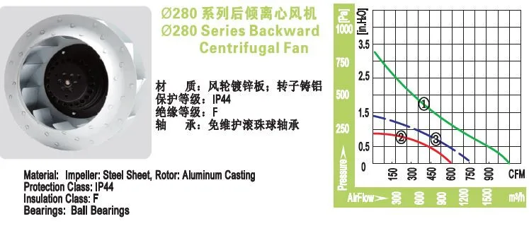AC Centrifugal Backward Curved Fan 280 mm(11 in) External Rotor Motor Powered Centrifugal Fan YWF.B4S-280-080